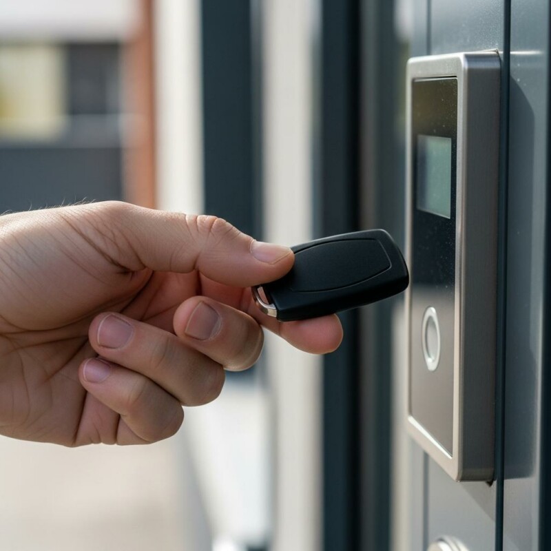 The proximity reader recognises the key fob is signaling for the door to open, so it will release the deadbolt on the door and open it with the authorised key fob. Touchless entry systems revolutionise your access control. The amount of time taken to open a front door will be reduced, all activity on the building device is stored then monitored, and none of this will come at the price of reduced home security levels. Think of the key fob as a digital key that can’t break in a door, doesn’t require a locksmith, and can be replaced by a property manager using a blank template easily.